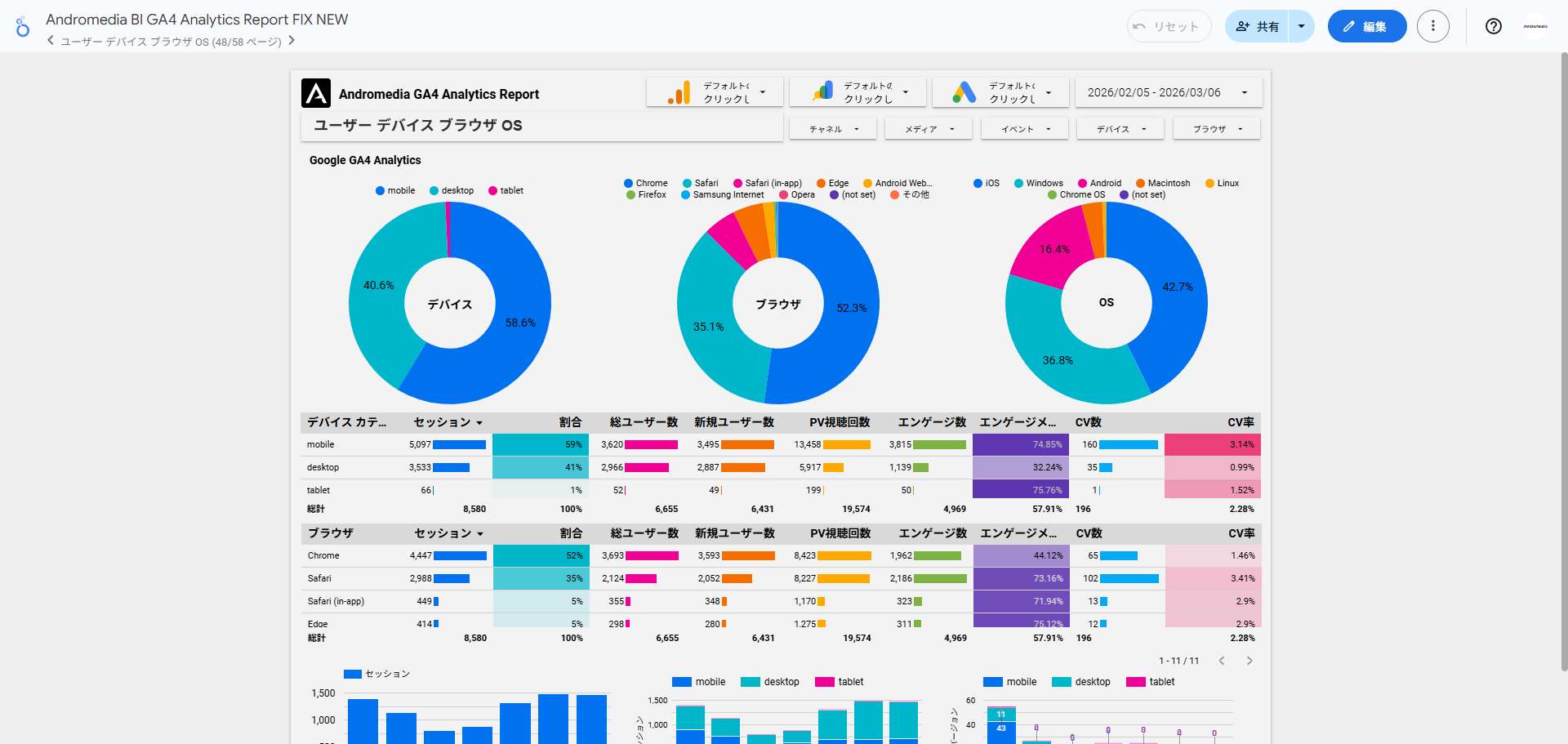 アンドロメディア合同会社(東京都世田谷区、代表:猪山浩邦、以下「アンドロメディア」)は、Google アナリティクス 4(GA4)、Google Search Console、Google 広告などのデータを統合し、Webサイトおよびデジタルマーケティング施策の状況を一元的に可視化するダッシュボードソリューション「Andromedia BI(アンドロメディア・ビーアイ)」の提供を開始いたしました。